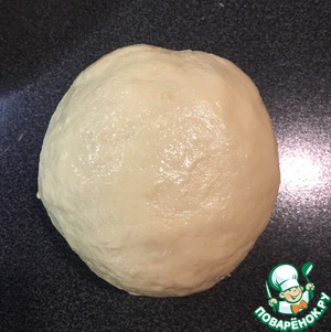 Выкладываем тесто на стол и хорошенько вымешиваем в течении 7-8 минут пока тесто не станет однородным, мягким и эластичным. Скатываем тесто в шар, слегка смазываем растительным маслом.