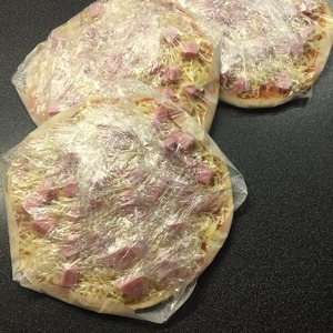 Когда пицца немного заморозилась и затвердела, упаковываем каждую заготовку в пищевую пленку.