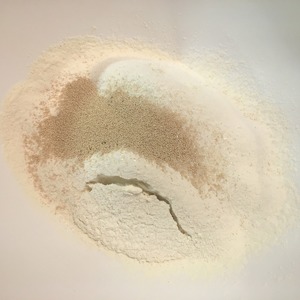 Смешиваем сухие ингредиенты: мука, сахар, соль, дрожжи.