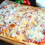 P.S. В последнее время всю выпечку, в том числе и эту пиццу заморачиваюсь и готовлю на живых прессованных дрожжах (заменяю 1 к 3), тесто получается намного пышнее и вкуснее... А сухие дрожжи выкинула все))