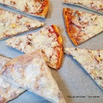 Ребенок запросил на обед пиццу или пришли в гости друзья, все дружно просят пиццу? Не вопрос! Достаем наши заготовки из морозилки, снимаем пленку и вместе с пергаментов выкладываем на противень, размораживаем 15 минут при комнатной температуре и выпекаем в предварительно разогретой до 180-190 градусов духовке, на нижнем уровне 13-15 минут. Дети счастливы, а маме никаких лишних хлопот!