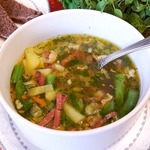 Предлагаю вам попробовать холодным осенним вечером очень сытное, согревающее, ароматное и невероятно вкусное блюдо из зелёной фасоли. Блюдо относится к немецкой кухне, оригинальное название "Bohneneintopf".