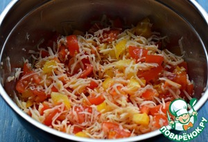 Болгарский перец и помидор нарезать мелким кубиком.
