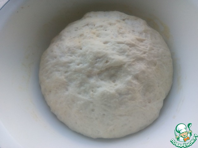• Затем добавить оставшуюся муку с солью, хорошенько перемешать, вводя растительное масло. Замесить тесто, оно очень мягкое и не пристает к рукам- сплошное удовольствие, вот такой колобок получился.