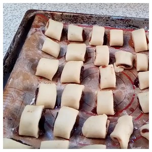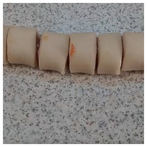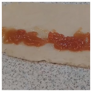 Как только прошел час, достаньте тесто, разделите его на две половины! Одно половину рассекайте что бы ширина была 7-5 см