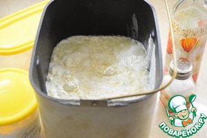 Все продукты должны быть обязательно одинаковой, комнатной температуры, т. к. выпекать хлеб мы будем на режиме "Скорый". Продукты закладываем в ведерко ХП согласно инструкции.