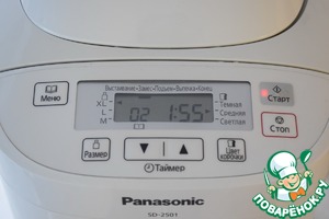 Выбираем режим "Быстрый хлеб", размер - XL (в моей ХП это примерно на 700 г муки), цвет корочки - по желанию. Нажимаем кнопку "Старт". При замесе посмотрите на колобок: может нужно добавить жидкости или муки.