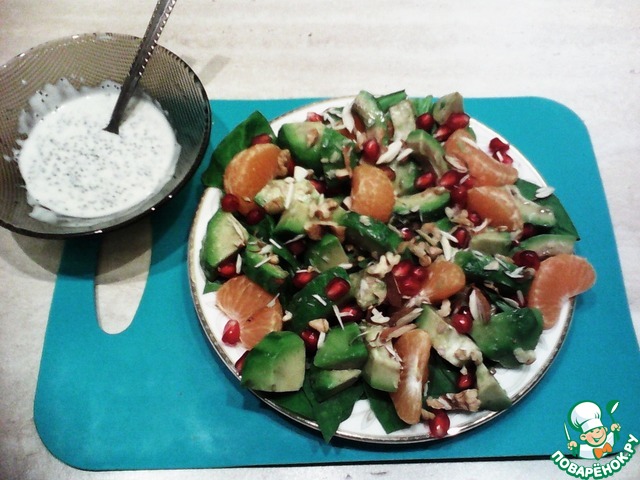 Рецепт «Салат с авокадо, мандаринами и шпинатом»: