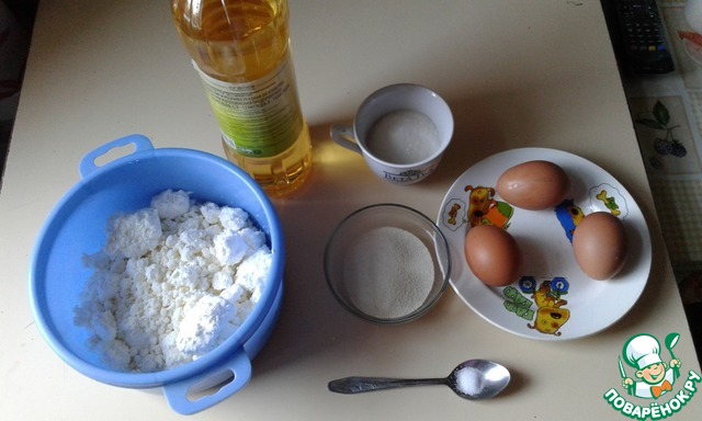 Приготовить ингредиенты. Творогу дать постоять при комнатной температуре немного для более мягкого взбивания вилкой