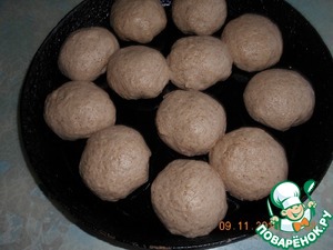 Скатать шарики, разложить в смазанную сковороду, оставить еще на 30 минут для поднятия.