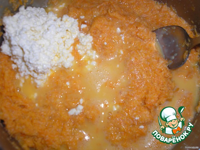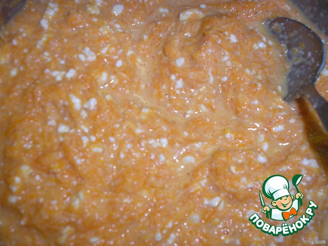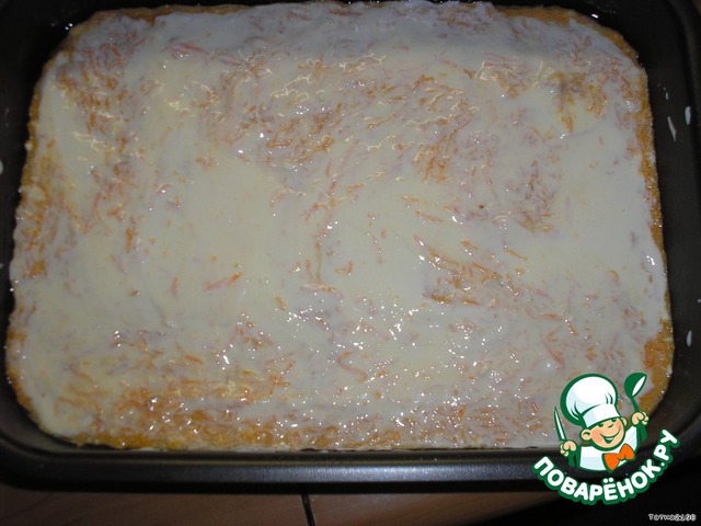 Полученную массу выложить в форму, смазать сметаной и выпекать до готовности.