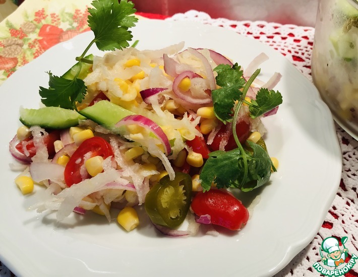 Рецепт «Салат с дайконом, кукурузой и халапеньо»: