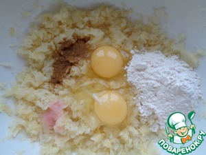 Измельчить капусту в блендере (мясорубке), добавить яйца, соль, приправу, муку.