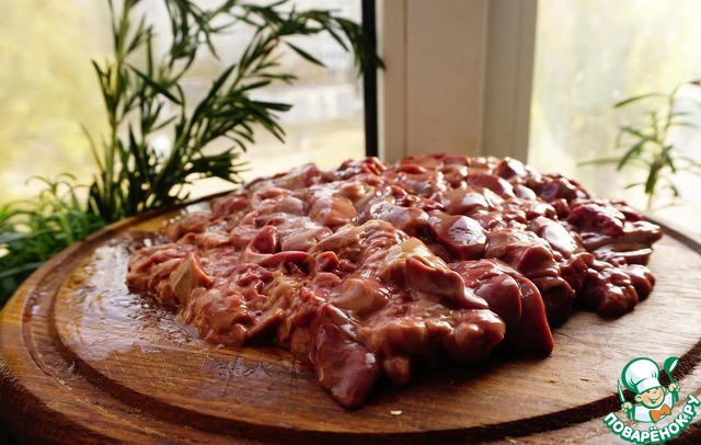 Зачищаем печенку от лишних жилок. Режем полосками.