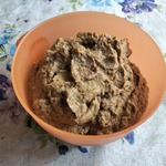 Раскладываем паштет по банкам и ставим в холодильник для застывания на пару часов. У меня выходит их такого количества 2 банки пор 0,5 л. Одну мы съедаем сразу, а другую я отправляю в морозильник. Размораживаю в течение ночи в холодильнике. Паштет сохраняет свой вкус.
