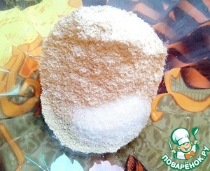 сухие быстродействующие дрожжи соединяем с 1 столовой ложкой муки из общего количества и сахаром. -