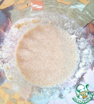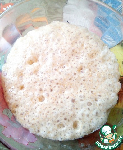 Вот такая должна получиться опара. Она выросла вдвое и вся в пузырьках.