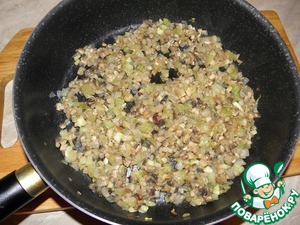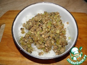 Лук. грибы и очищенные от кожи кабачки режем мелкими кубиками