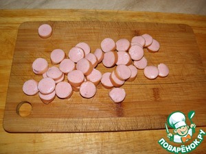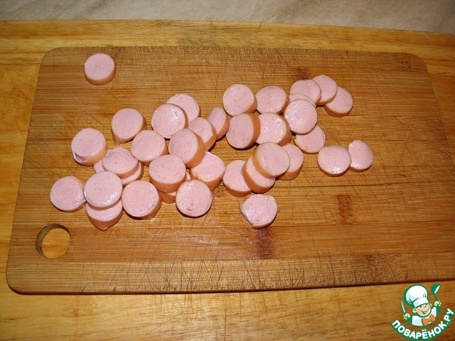 Тонко нарезать сосиски