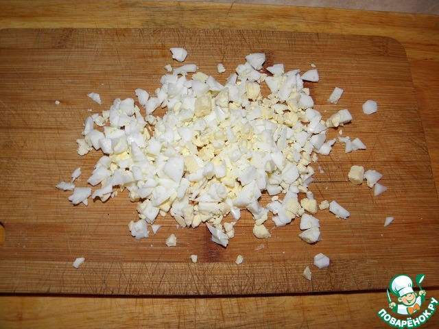 Яйца сварить вкрутую и мелко нарезать