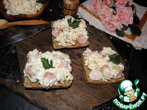 Салат готов. Намазываем на любимый хлеб, тосты, булочки и т. д, подаем.