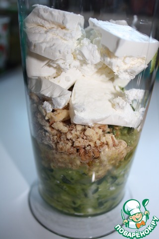 Смешать в блендере кабачки, брынзу, орехи, укроп и йогурт.
