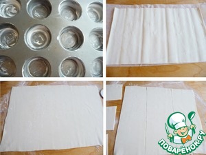 У меня тесто в рулоне. Раскрутить рулон. Тесто немного раскатать.
