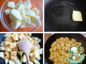 Выложить дольки яблок после того, как сковорода хорошо разогреется.