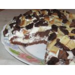 Это разрез "Шоколадной девочки". Между слоями к сливкам добавлен тертый шоколад. Сверху тоже много шоколадной стружки, которая приятно похрустывает при еде.