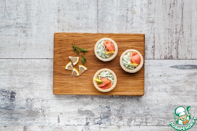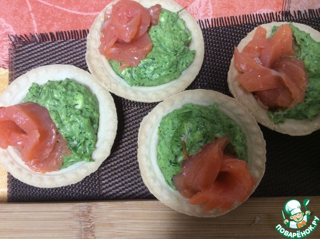 Рецепт «Тарталетки с зеленой начинкой и лососем»: