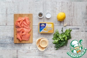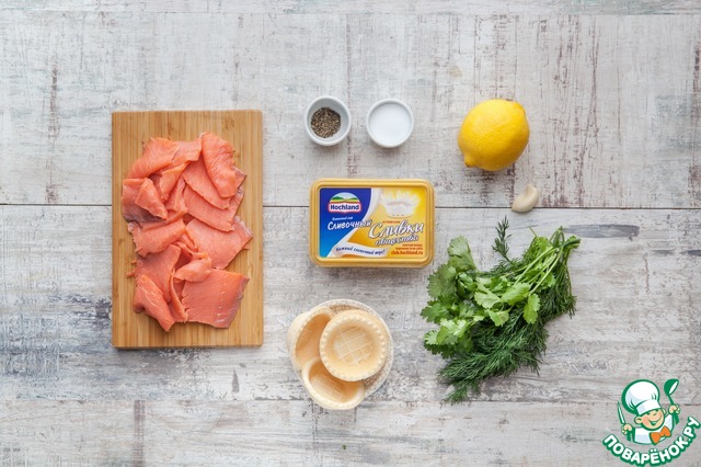 Ингредиенты для «Тарталетки с зеленой начинкой и лососем»: