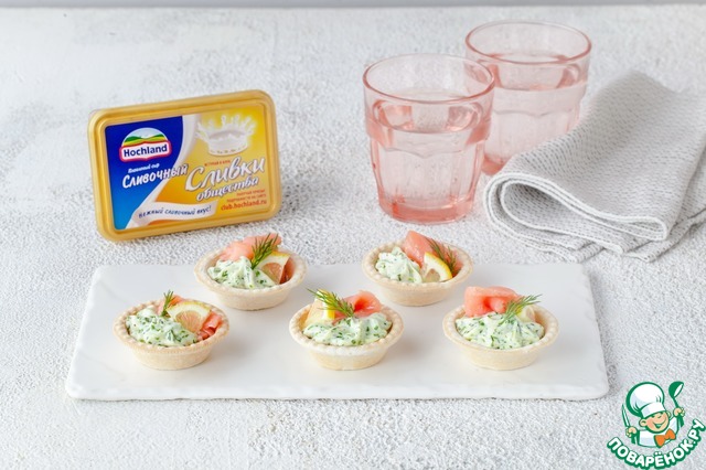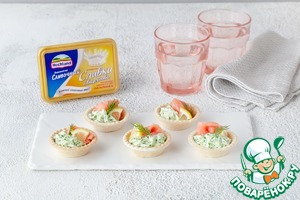 Тарталетки с зеленой начинкой и копченым лососем от Hochland.