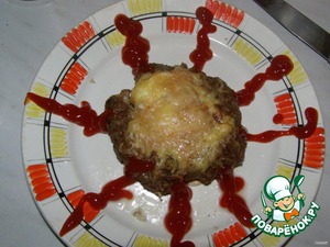 Разбить яйцо в середину фарша. Поставить в духовку, чтобы яйцо схватилось, если оно немного вытечет, ничего страшного, уберите вытекшее яйцо со сковороды.