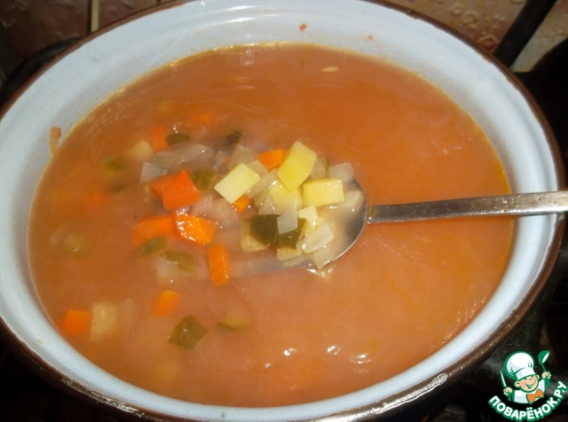 Скоро праздники, и хороший хозяин (хозяйка) должен позаботиться не только о хорошем «застолье», но и о самочувствии своих гостей на следующее утро. А то ведь мало ли как бывает. Такой вот простой суп отлично подойдет. Да и без праздников будет вкусно…