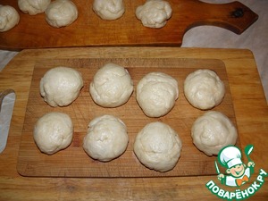 Когда тесто поднялось, разделываем его и лепим пирожки.