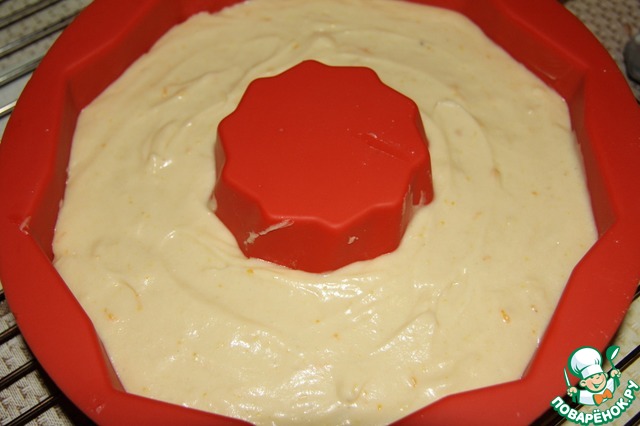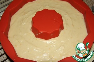 Форму смазать, если необходимо, маслом. Выложить тесто в форму (размер 26-28 см с отверстием в середине). Выпекать при 180 градусах около 40-50 минут.