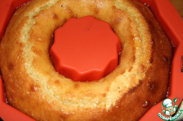 Аккуратно кекс вернуть в форму, погрузив в сироп. Оставшийся сироп вылить сверху и оставить пропитываться до полного впитывания сиропа.