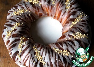 Вынуть из формы, украсить глазурью. Сверху можно посыпать фисташками или другими посыпками. Я присыпала воздушным рисом.