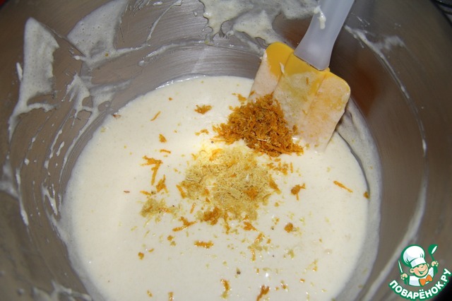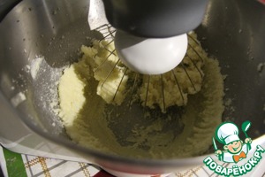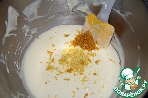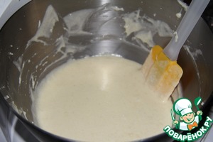 Добавить желтки. Затем, по одному, яйца, тщательно взбивая после каждого добавления.