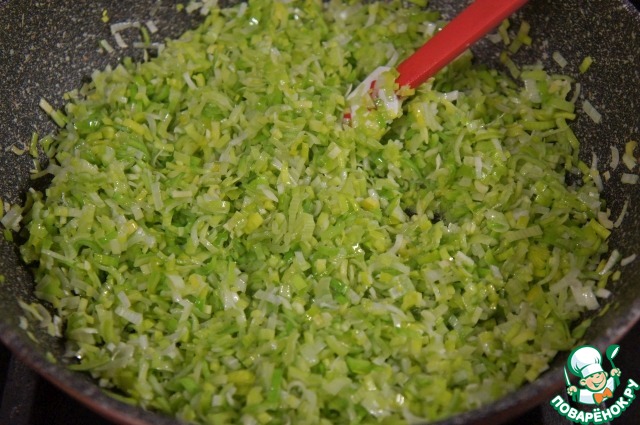 В сковороде разогреть оливковое масло, обжарить лук до прозрачности. -