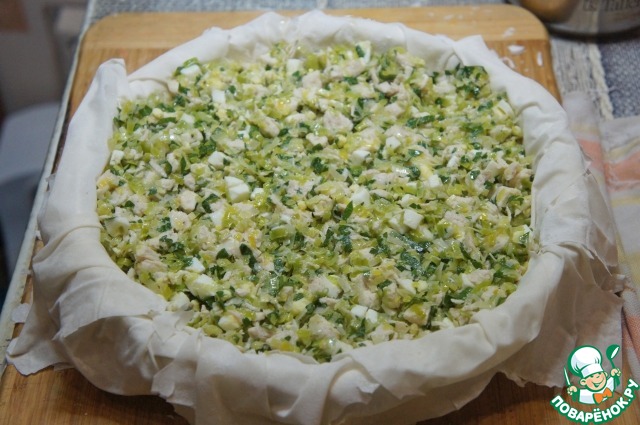 Выложить на тесто всю начинку.
