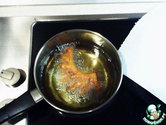 Ещё хочу отметить, что масло очень пузырится!! особенно в конце (у меня было так). Будьте очень осторожны! Поднимайте сотейник над варочной поверхностью и шумовкой 'сгоняйте' пузыри. -