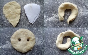 Разогреть духовку до 180 градусов. Из остатков теста сформировать уши, пятачок, лапы, хвостик.