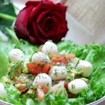 Да, сыр был мелкий, зато помидоры крупные сочные и розовые. Помидорный сок придал дополнительную прелесть.