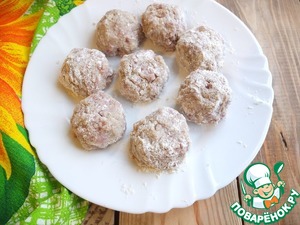Формируем из фарша небольшие шарики, обваливаем их в муке.