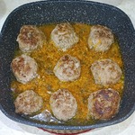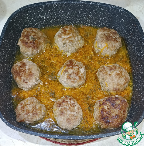 Вливаем воду, так чтобы тефтели наполовину были покрыты водой. Я не указала точный объем воды, потому что ее количество зависит от диаметра сковороды и количества тефтелей.