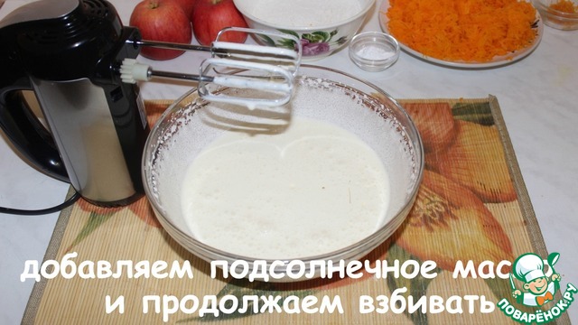 Добавляем подсолнечное масло и продолжаем взбивать.