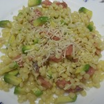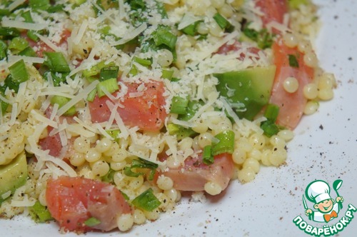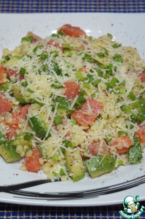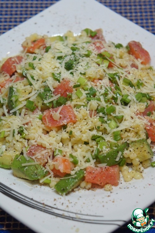 Салат из пасты птитим с лососем и авокадо. Этот салатик удивил нас с мужем и невероятно порадовал своей новизной и очень изысканным вкусом. Ведь, казалось бы, классическое сочетание: лосось и авокадо, но... паста птитим творит чудеса. Вкус совершенно другой. Обязательно повторю его на Новый год. А уж как он будет к месту на День влюбленных - сплошные афродизиаки! Во вкусах я написала "рыбный, сырный", но у него несомненно вкус пасты и авокадо. НО! К сожалению "Список разрешенный вкусов" нам не дает такого выбора, увы...