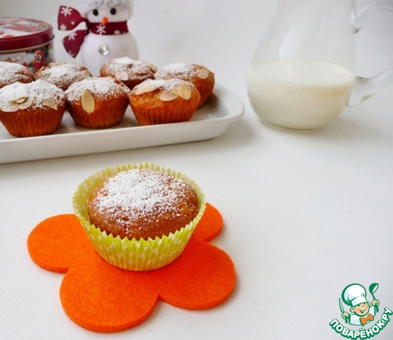 Готовые кексы посыпать сахарной пудрой и подавать к чаю или молоку.