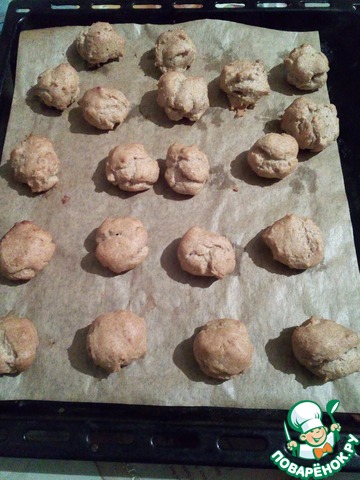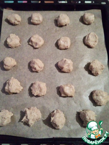 Получившееся тесто отсадить на противень с пергаментом кондитерским мешком либо же, как это сделала я- чайной ложкой, немного помогая влажными руками.